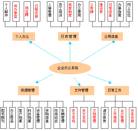 一、企業(yè)辦公系統(tǒng)特點 隨著全球化市場競爭的日益激烈,我國民族工業(yè)將面臨著前所未有的機遇和挑戰(zhàn)。加強企業(yè)信息化建設(shè),通過深入應(yīng)用世界領(lǐng)先的信息技術(shù)購建高效率的企業(yè)信息基礎(chǔ)設(shè)施,將為迎接即將來臨的市場全球化激烈競爭做好充分準備。 近兩年的互聯(lián)網(wǎng)熱潮盡管被媒體形容成為是泡沫,但是這個巨大的泡沫也為我們創(chuàng)造了巨大的市場,互聯(lián)網(wǎng)使大大小小的企業(yè)都知道了網(wǎng)絡(luò)的優(yōu)勢,都布了內(nèi)部局域網(wǎng),同時廣大的企業(yè)領(lǐng)導也充分認識到了企業(yè)上網(wǎng)并不僅僅意味著簡單的信息發(fā)布系統(tǒng),在市場經(jīng)濟大潮中如何利用先進的計算機網(wǎng)絡(luò)化管理系統(tǒng)及時發(fā)布企業(yè)動態(tài)信息,及時接收市場反饋信息,有效管理、處理企業(yè)內(nèi)部各種信息將是任何企業(yè)將面臨的事情。 企業(yè)辦公系統(tǒng)是通過先進成熟的計算機和通信技術(shù)手段建立的一個高質(zhì)量、高效率、智能化的辦公系統(tǒng),為領(lǐng)導決策和企業(yè)辦公提供信息服務(wù),提高辦公效率,減輕工作人員工作負擔,節(jié)約辦公經(jīng)費,從而實現(xiàn)企業(yè)的企業(yè)辦公、辦公無紙化、資源信息化、決策科學化。 企業(yè)辦公系統(tǒng)是傳統(tǒng)辦公業(yè)務(wù)和現(xiàn)代企業(yè)資源信息管理系統(tǒng)之間的邊沿學科,企業(yè)辦公系統(tǒng)不只限于傳統(tǒng)辦公業(yè)務(wù)的管理,還應(yīng)包括企業(yè)資源信息的管理。系統(tǒng)將包括資源管理、行政管理等企業(yè)信息管理模塊,以使企業(yè)辦公系統(tǒng)能夠促進企業(yè)各種信息的管理,間接產(chǎn)生經(jīng)濟效益。 系統(tǒng)在對傳統(tǒng)辦公業(yè)務(wù)管理模塊中融入了計算機網(wǎng)絡(luò)的新思維,如任務(wù)安排系統(tǒng),一個企業(yè)中完善的任務(wù)安排系統(tǒng)可以有效地提高企業(yè)的辦事效率,通過企業(yè)辦公系統(tǒng),任務(wù)安排事項的辦理過程和結(jié)果不在需要書面請示匯報,只需通過辦公系統(tǒng)及時輸入,主管領(lǐng)導就可以及時了解督查事項的辦理過程,極大程度地提高工作效率企業(yè)辦公系統(tǒng)的特點如下:* 企業(yè)辦公系統(tǒng)重點在于提高企業(yè)的管理水平、間接產(chǎn)生經(jīng)濟效益;* 企業(yè)辦公系統(tǒng)建立了企業(yè)內(nèi)部通訊平臺,方便企業(yè)內(nèi)部信息的流通;* 企業(yè)辦公系統(tǒng)提高企業(yè)辦公效率,為企業(yè)實施體制改革、減員增效奠定了基礎(chǔ);* 企業(yè)辦公系統(tǒng)本身就包容了企業(yè)文化部分,便于利用計算機系統(tǒng)的手段實施企業(yè)文化戰(zhàn)略;* 企業(yè)辦公系統(tǒng)與企業(yè)生產(chǎn)管理ERP的“資源管理”部分功能重疊,辦公系統(tǒng)重在管理文檔類數(shù)據(jù),如文書、科技檔案資料、人事資料、客戶資料、設(shè)備資料、市場信息等等。二、實施企業(yè)辦公系統(tǒng)目的* 建立企業(yè)內(nèi)部經(jīng)濟、方便、快捷的通訊平臺;* 實現(xiàn)企業(yè)內(nèi)部市場動態(tài)信息的及時反饋、收集、指導生產(chǎn)良性循環(huán);* 實現(xiàn)企業(yè)客戶資源的及時積累、查詢。* 實現(xiàn)企業(yè)各種信息資料的有效管理。* 促進企業(yè)文化的建設(shè),加強企業(yè)的凝聚力。* 實現(xiàn)企業(yè)內(nèi)部文書、科技、人事、財務(wù)檔案的有效管理;* 企業(yè)生產(chǎn)狀況、項目進展、行政管理事物的任務(wù)安排;* 網(wǎng)上收集企業(yè)內(nèi)部生產(chǎn)、行政信息形成電子刊物;* 建立網(wǎng)上培訓基地,使企業(yè)職工能不斷學習新知識;* 內(nèi)部日程安排、辦事指南、通訊名錄方便企業(yè)工作人員辦公;三、系統(tǒng)功能說明一套完善的系統(tǒng)應(yīng)當要解決如下幾大功能:協(xié)作(Collaboration) 、共享(Share)、溝通(Communication) 、管理(Control) 、工作流(Workflow)以下是就這幾方面功能的具體分析企業(yè)辦公系統(tǒng)的主要目標是實現(xiàn)企業(yè)辦公及事務(wù)管理,有效地提高企業(yè)辦公效率、節(jié)約辦公經(jīng)費、創(chuàng)建企業(yè)文化。是辦公系統(tǒng)與管理信息系統(tǒng)的結(jié)合,系統(tǒng)有多個單獨模塊組成,體系結(jié)構(gòu)如下: